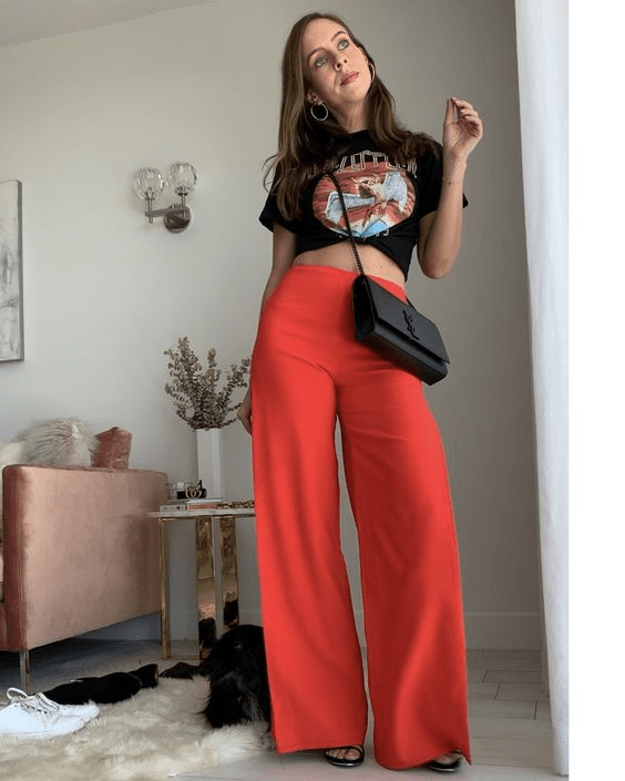 Statement pants when paired with a t-shirt can give the impression that you worked hard to put together a cute outfit for the date. Loud colors pants in Barbie pink, moss green, and tangerine are a statement on their own. To tone down the look, opt for strappy sandals and dainty jewelry.