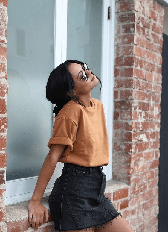 Fashion should be a form of escapism and not a form of imprisonment. To highlight your favorite T-shirt as a key piece this season, pairing it with voluminous, feminine, and blooming skirts with floral designs makes them ideal for date-night clothing. Wear with lace-up heels and hoops to beautifully enhance your ensemble without taking away from it.